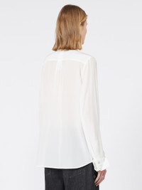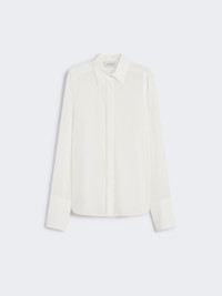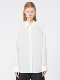 DETAILS Pure silk shirt with timeless elegance, reinterpreted in the classic Sportmax aesthetic. The custom metal buttons and wide cuff add character to the design. Pure silk crepe de Chine shirt Feminine fit Shirt collar Concealed front closure with visible top button Customised metal buttons on the collar and cuffs Wide foldable cuff with double button Regular fit COMPOSITION AND CARE 100% silk. Hand wash cold (40°c max); do not bleach; do not tumble dry; line drying in the shade; cool iron; professionally dry clean perchloroethylene - mild process; do not wet clean.; remove the collar stays before washing. Distributed by Max Mara S.r.l., registered office in Reggio Emilia (Italy), Via Giulia Maramotti 4, 42124 (IT)