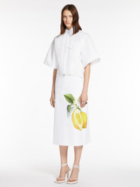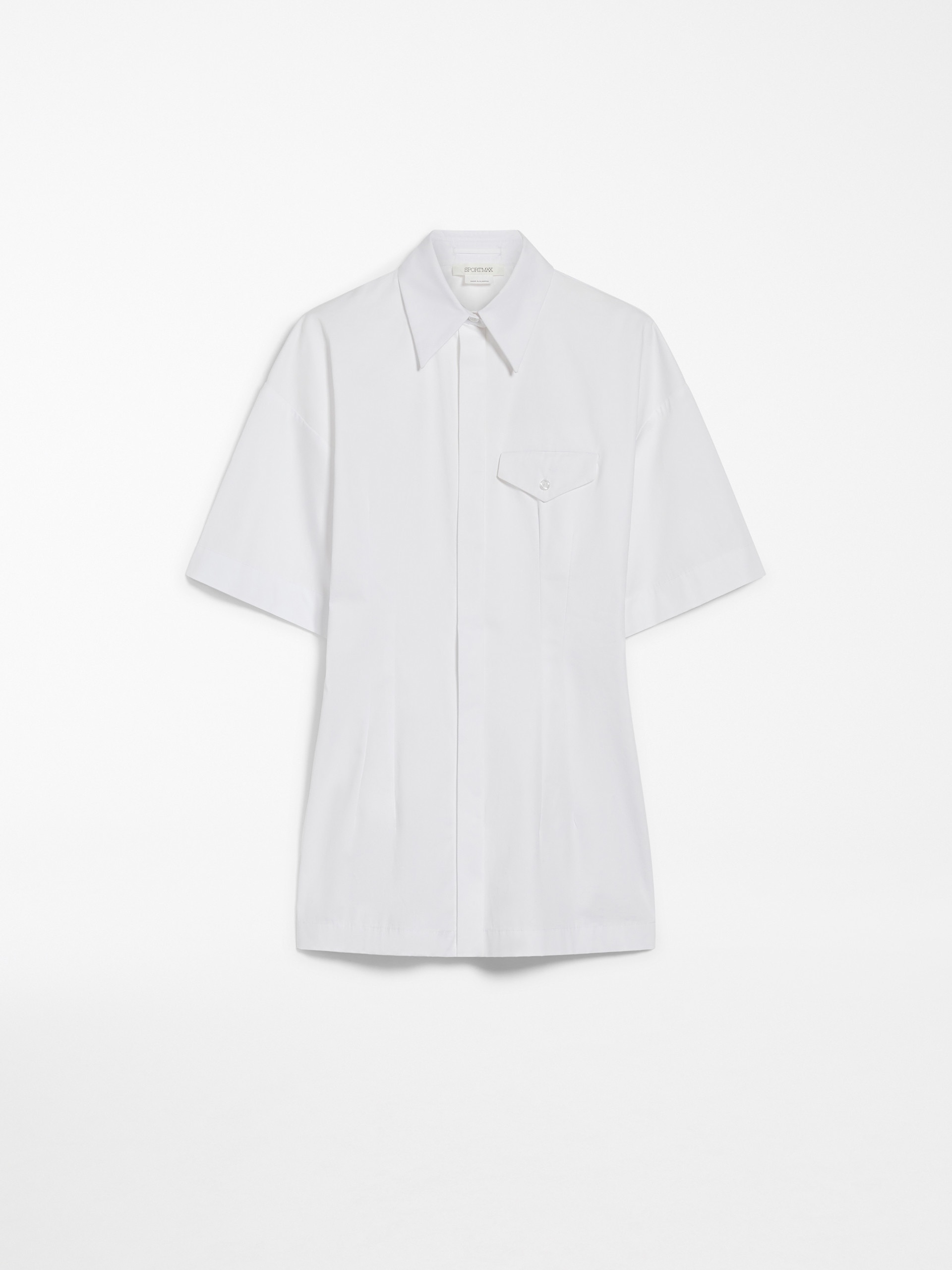 DETAILS Shirt in durable, pure cotton canvas, with double darts on the front and back that create a fitted and feminine silhouette. The inspiration is casual, with short sleeves in an oversized cut inspired by T-shirt designs. Concealed buttoning, and breast pocket with flap and button. Centre-back slit. COMPOSITION AND CARE 100% cotton. Machine wash cold delicate cycle; do not bleach; do not tumble dry; line drying in the shade; cool iron; professionally dry clean perchloroethylene - mild process.; don’t iron the labels. Distributed by Max Mara S.r.l., registered office in Reggio Emilia (Italy), Via Giulia Maramotti 4, 42124 (IT)