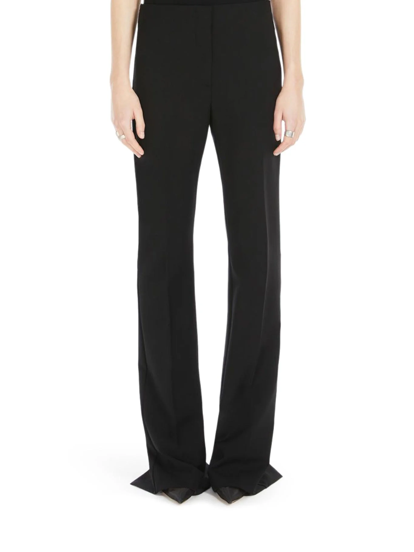 -Slim fit trousers made of double bi-stretch technical viscose fabric -The construction is low-waisted, with side pockets and removable leather back basque -Bottom with side zip to adjust the width on the foot -Black Made in Italy Composition: Viscose 56% Viscose, 34% Polyamide, 10% Elastane Color code: 002 BLACK 2512131043600