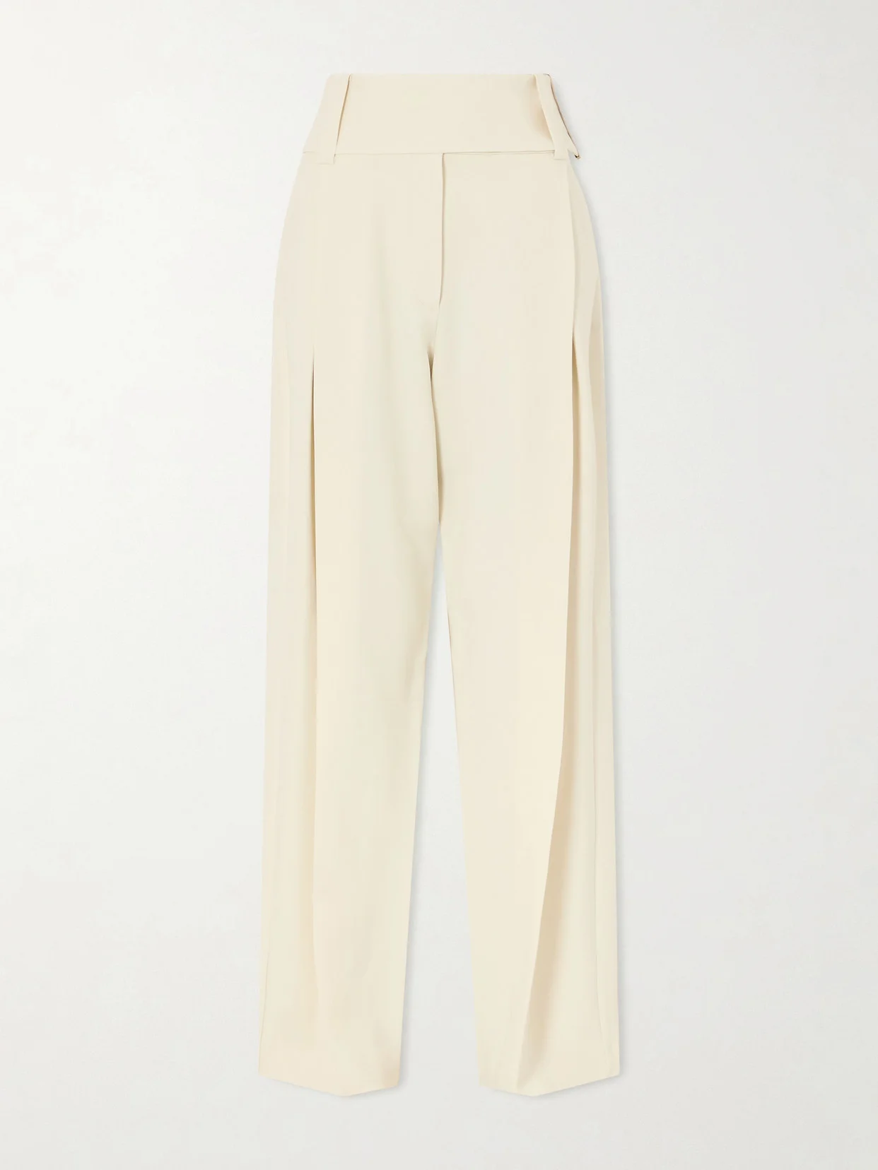 SportMax's pants are cut with a fluid, wide-leg silhouette that drapes effortlessly from the waist. Designed to sit high, they fall into elongated, sweeping lines that move with ease. Subtle volume through the leg enhances their modern, directional feel, making them a statement yet versatile foundation.