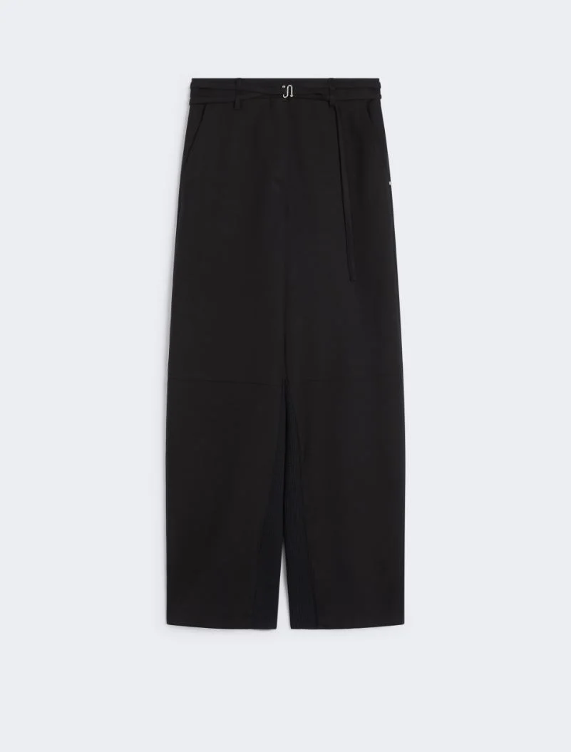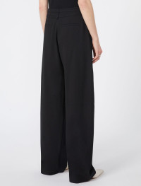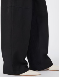 Trousers in double cotton and viscose cady, with a straight line and slightly low waist. High belt loops at the waist support the double-wrap belt with S-buckle. A knitted insert on the inside of the leg adds an original detail. - Straight trousers in double cotton and viscose cady, with ribbed knit inserts - Straight fit with slightly low waist and wide leg - Customised waistband interior. - High belt loops with double-wrap fabric belt with S-buckle - Knee-length cut and ribbed knit inserts on the inside of the leg - Regular fit Composition and Care Fabric 53% cotton, 47% viscose; jersey fabric 100% polyamide. Do not wash; do not bleach; do not tumble dry; cool iron; professionally dry clean perchloroethylene - mild process; do not wet clean.; remove the buckle before washing. Distributed by Max Mara S.r.l., registered office in Reggio Emilia (Italy), Via Giulia Maramotti 4, 42124