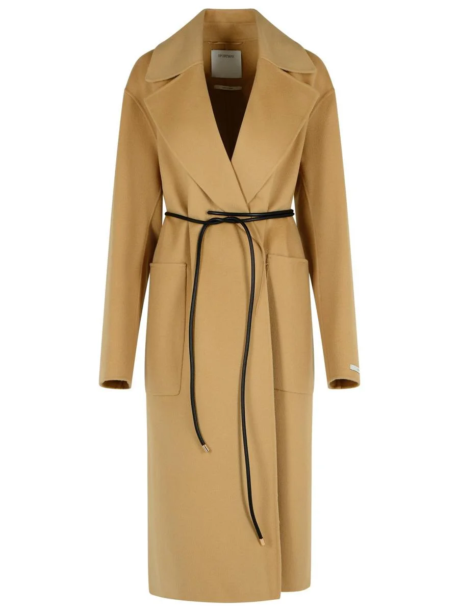 Sportmax Abate' Camel Virgin Wool Robe Coat