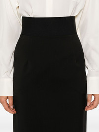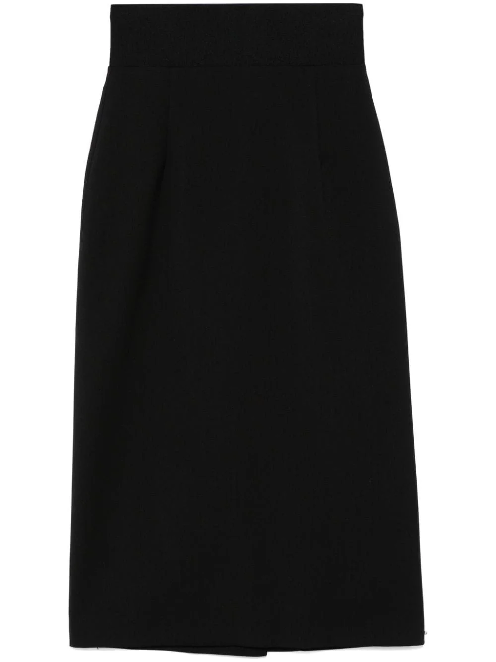 Anny midi skirt Highlights - Black - Virgin wool - Concealed rear hook and zip fastening - Elasticated waistband - High waist - Dart detailing - Central rear vent - Full lining - Pencil silhouette - Straight hem - Mid-length Made in Italy Composition Outer: Virgin Wool 100% Lining: Acetate 70%, Polyester 30% SIZE & FIT Model measurements Height 5 ft 11 in(1.8 m) Bust/Chest 33.07 in(84 cm) Hips 37.4 in(95 cm) Waist 25.19 in(64 cm) FittingInformation This midi-length skirt is intended to be worn high on the waist The vented hem offers movement at the rear Made from a midweight non-stretch fabric