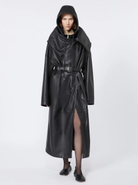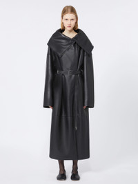 DETAILS Dramatic and luxurious, this long leather coat has oversized lines and a large, raised collar. The asymmetrical metal zip fastening adds a bold note to the design. - Leather coat with lining - Oversize - Raised collar and asymmetrical metal zip fastening - Belt at the waist with metal buckle - Centre-back vent - Regular fit COMPOSITION AND CARE Style in lamb leather; inner fabric 100% polyester. Do not wash; do not bleach; do not tumble dry; do not iron; do not dry clean; do not wet clean.; do not wash or dry clean by fabric methods. clean only by leather and fur specialists.; remove the belt before washing.; care should be taken with light-coloured garments and accessories because body heat could lead the leather to colour loss and staining. care should be taken when sitting on light-coloured surfaces, especially if damp. avoid lengthy exposure to direct light or heat sources. do not store garments in plastic bags for long periods. Distributed by Max Mara S.r.l., registered office in Reggio Emilia (Italy), Via Giulia Maramotti 4, 42124 (IT) Collection: Sportmax Product code: 2476025306003 - ABANO1234