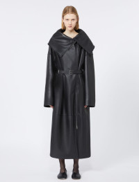 Dramatic and luxurious, this long leather coat has oversized lines and a large, raised collar. The asymmetrical metal zip fastening adds a bold note to the design. - Leather coat with lining - Oversize fit - Raised collar and asymmetrical metal zip fastening - Belt at the waist with metal buckle - Centre-back vent - Regular fit Composition and Care Style in lamb leather; inner fabric 100% polyester. Do not wash; do not bleach; do not tumble dry; do not iron; do not dry clean; do not wet clean.; do not wash or dry clean by fabric methods. clean only by leather and fur specialists.; remove the belt before washing.; care should be taken with light-coloured garments and accessories because body heat could lead the leather to colour loss and staining. care should be taken when sitting on light-coloured surfaces, especially if damp. avoid lengthy exposure to direct light or heat sources. do not store garments in plastic bags for long periods. Distributed by Max Mara S.r.l., registered office in Reggio Emilia (Italy), Via Giulia Maramotti 4, 42124