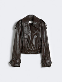 DETAILS Short trench coat in a hybrid construction, with details inspired by bomber jackets. Made of coated cotton with a shiny patent leather effect, it’s loose on the torso and is held in place by a buttoned belt at the waist. Short trench coat in bonded cotton with a patent leather effect Regular fit Raised collar with storm flap, side fastening with visible buttons Epaulettes on shoulders and straps at the wrists Reverse pleat at the back Regular fit COMPOSITION AND CARE Jersey fabric 100% cotton; coating polyurethane. Do not wash; do not bleach; do not tumble dry; cool iron; professionally dry clean perchloroethylene - mild process; do not wet clean.; wash the garment while it is fastened.; turn the articles inside out before washing.; to be ironed on reverse. Distributed by Max Mara S.r.l., registered office in Reggio Emilia (Italy), Via Giulia Maramotti 4, 42124 (IT)