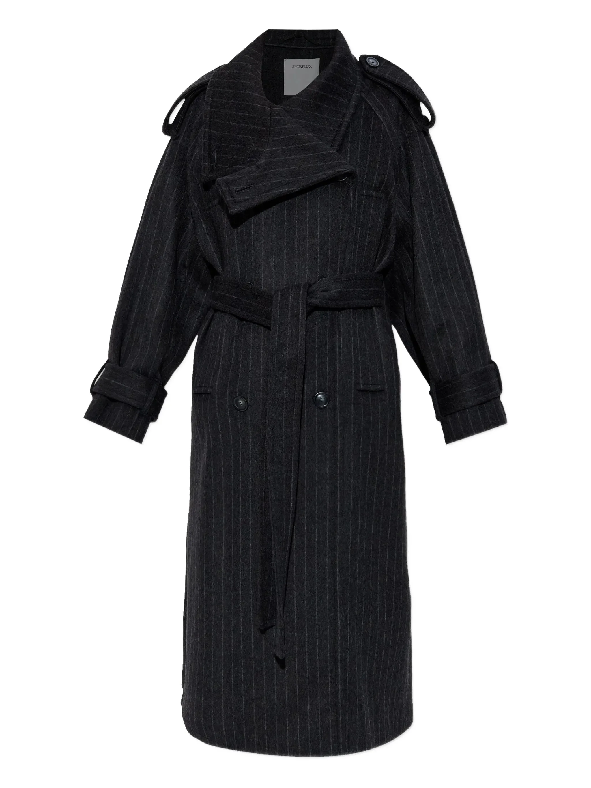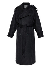 black pinstripe pattern double-breasted button fastening detachable belt epaulettes buttoned cuffs - Color: BLACK - Made in: Italy - Designer Style ID: AROLD1234 516 002 Composition and care Outer Composition Wool: 100.0%