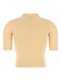 short-sleeve knit top Highlights - Beige - Mock neck - Slogan detailing - Short sleeves - Ribbed hem Made in Italy Composition Wool 80%, Cashmere 20%