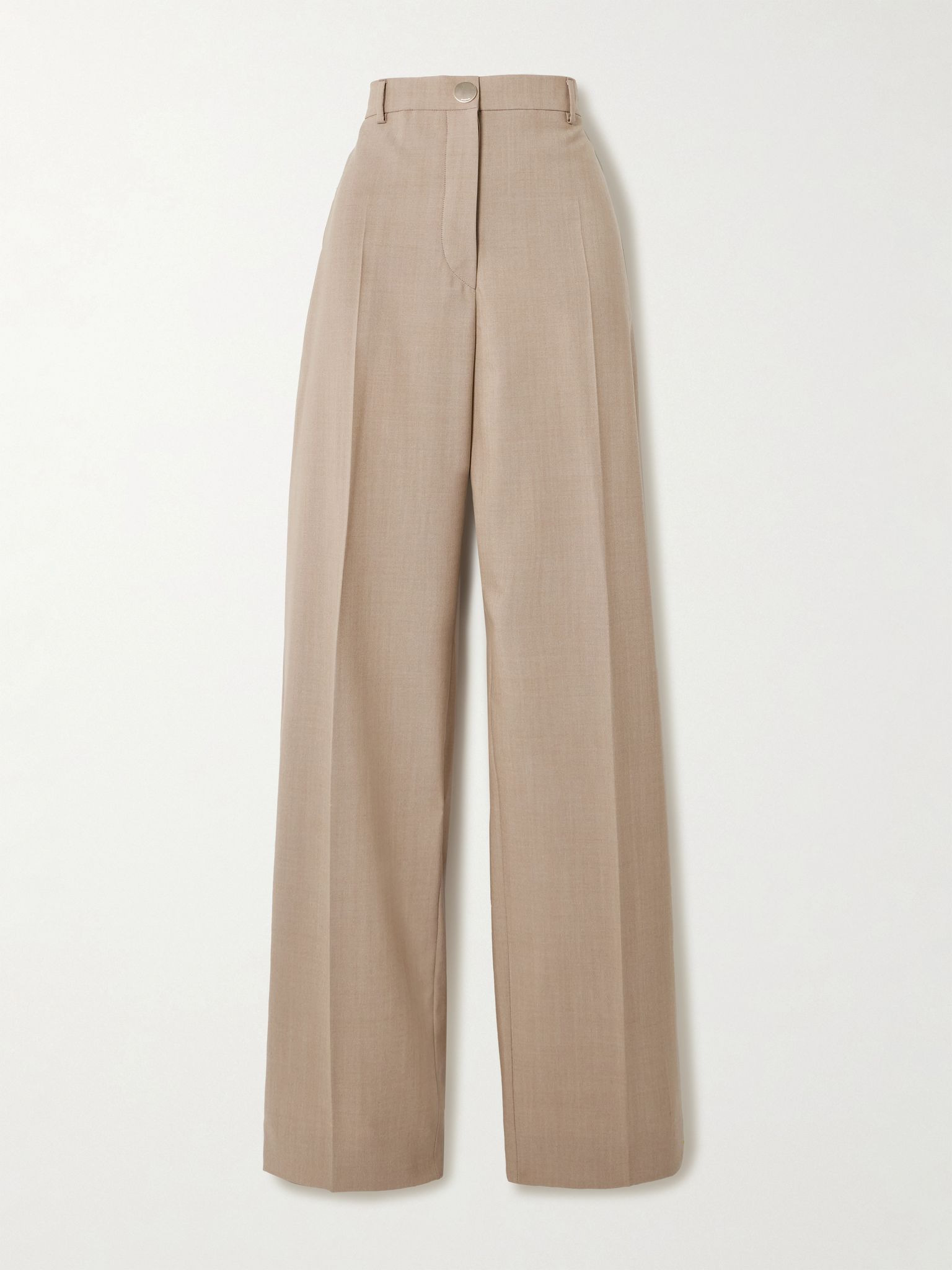 Salvo pleated grain de poudre wool wide-leg pants Beige