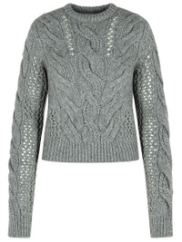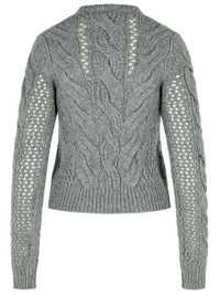 Wool blend sweater, regular fit, rounded neckline, braided pattern and perforated stitches on the chest and sleeves, ribbed hem and cuffs, regular fit Gender: Women Material: 70% WOOL, 30% NYLON Color: GREY Made in: Italy Product ID: 2522366142005 *Import tax/duty will be calculated at checkout (If applicable)