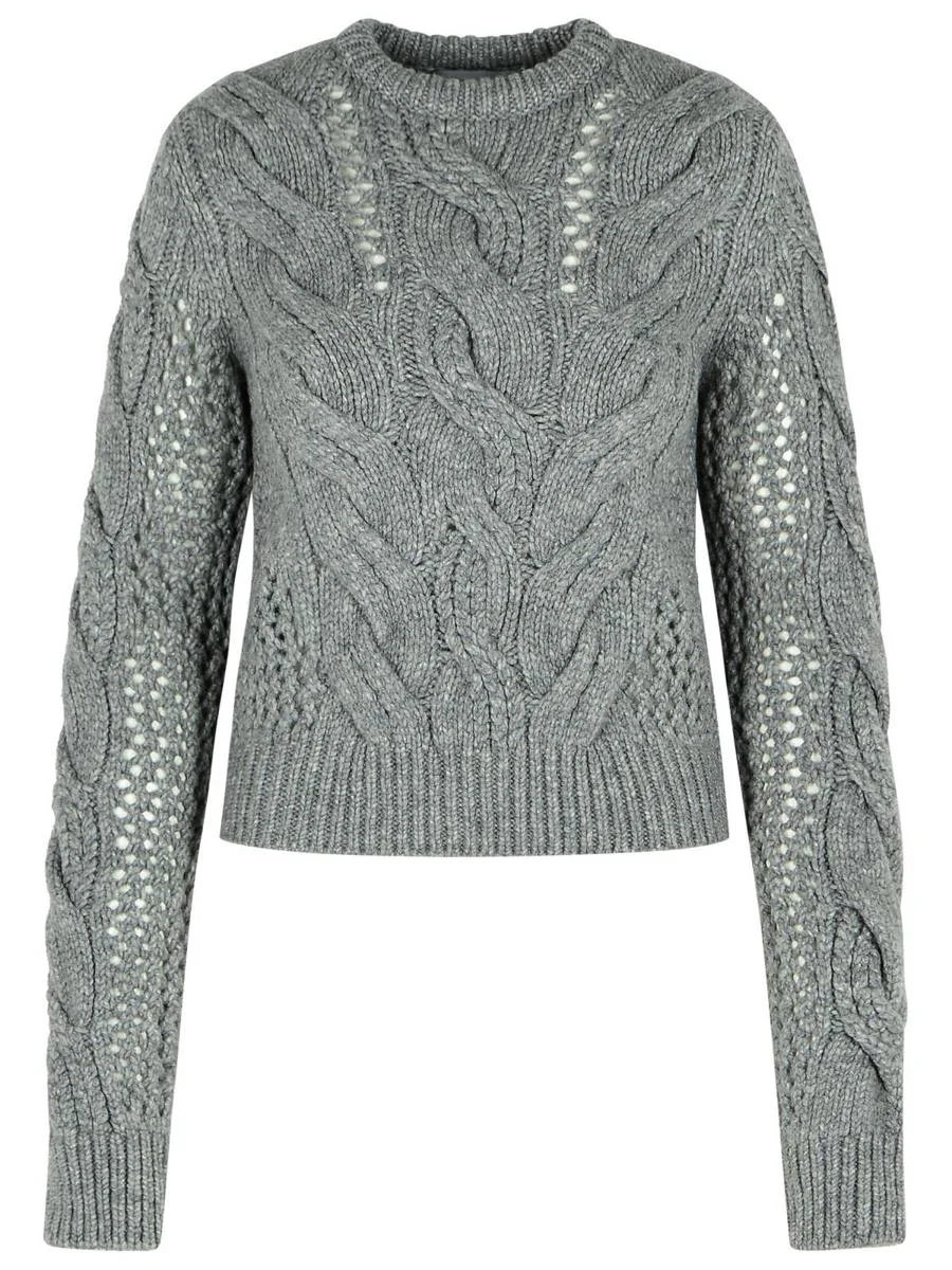 Sportmax 'Radio' Medium Grey Wool Blend Crew Neck Sweater With Braids