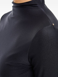 turtleneck ruched-shoulder dress Highlights - Black - Turtleneck neckline - Ruched shoulder line - Long sleeves - Close-fitting - Mini length Imported Composition Polyamide 80%, Spandex/Elastane 20% Washing instructions Read Manufacturer Guidelines