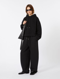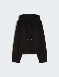Timeless hoodie in soft stretch cotton fabric. The dropped shoulder and ribbed knit hems define the loose fit; to be worn on more casual occasions. - Cotton blend stretch sweatshirt - Hood with drawstring and internal lining in matching jersey - Dropped shoulder and rubberised logo - Side slits and ribbed details - Regular fit Composition and Care Jersey fabric 87% cotton, 13% elastomultiester; lining 100% cotton. Machine wash cold delicate cycle; do not bleach; do not tumble dry; flat drying in the shade; cool iron; professionally dry clean perchloroethylene - mild process; professional wet cleaning - very mild process.; iron with a cloth between.; using neutral detergent.; protect accessories before washing.; turn the articles inside out before washing.; to be ironed on reverse. Distributed by Max Mara S.r.l., registered office in Reggio Emilia (Italy), Via Giulia Maramotti 4, 42124