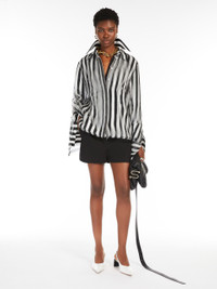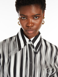 DETAILS Shirt made of striped pure cotton poplin, lined in silk organza with the same print for an op-art, three-dimensional effect. The two pieces are connected at the hem and left separate at the top. The style is feminine, with visible buttoning, double-width cuffs to be worn turned up and darts on the front to slightly cinch in the fit. Regular fit. COMPOSITION AND CARE Fabric 100% silk; fabric 2 100% cotton. Do not wash; do not bleach; do not tumble dry; cool iron; professionally dry clean perchloroethylene - mild process; do not wet clean.; put this item into a string bag before washing it.; wash the garment while it is fastened. Distributed by Max Mara S.r.l., registered office in Reggio Emilia (Italy), Via Giulia Maramotti 4, 42124 (IT)