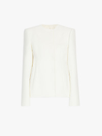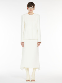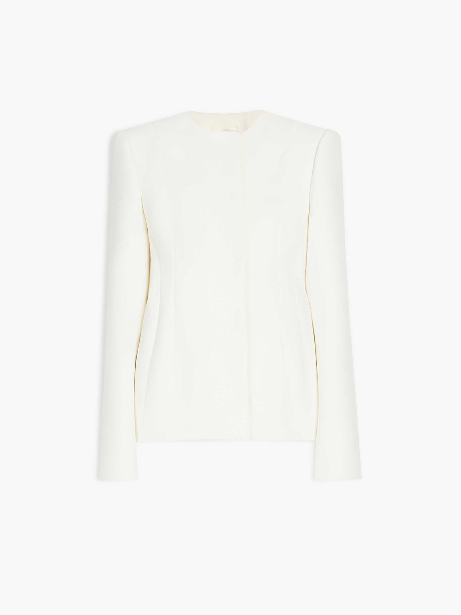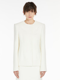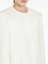 DETAILS Feminine jacket in technical fabric with clean construction at the neckline and covered fastening. The front is fitted and feminine with darts and contoured sides. The back boasts a cocoon-like style with a yoke and rounded shape. Hip-length model. COMPOSITION AND CARE Fabric 100% polyester; lining 69% acetate, 31% cupro. Do not wash; do not bleach; do not tumble dry; cool iron; professionally dry clean perchloroethylene - mild process; do not wet clean.; put this item into a string bag before washing it.; wash the garment while it is fastened.; don’t iron the labels.; contains non-textile parts of animal origin. Distributed by Max Mara S.r.l., registered office in Reggio Emilia (Italy), Via Giulia Maramotti 4, 42124 (IT)