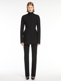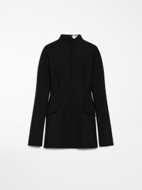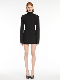 DETAILS Slim-fit short dress in stretch wool-blend gabardine fabric featuring a figure-reinforcing internal construction. The slim-fit bodice is created by means of the darts and contoured side panels that accentuate the waistline by rounding off the hips. The kimono design boasts a raised neck and concealed back fastening. Furthermore, the model features flap-adorned front pockets. COMPOSITION AND CARE Outer fabric 53% polyester, 43% virgin wool, 4% elastane; - except joining thread; inner fabric 100% polyester. Do not wash; do not bleach; do not tumble dry; cool iron; professionally dry clean perchloroethylene - mild process; do not wet clean. Distributed by Max Mara S.r.l., registered office in Reggio Emilia (Italy), Via Giulia Maramotti 4, 42124 (IT)