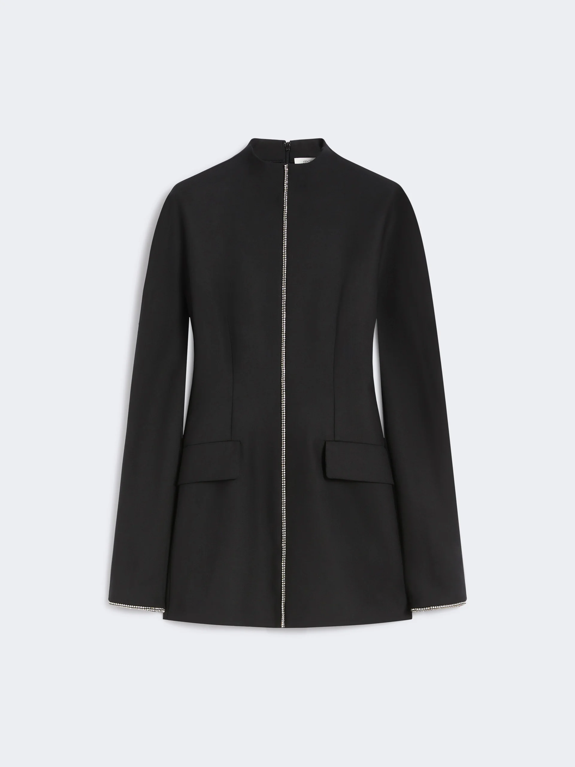 DETAILS The new mini dress boasts a graphic cut, a glamorous touch and a sinuous silhouette. The rhinestone appliques on the front seam and sleeve hems add a shiny touch. Dress in double-faced stretch wool-blend fabric Slim waist cut with rounded hips Raised neck with a concealed back zip Design reinforced with darts and contoured side panels Slim waist cut COMPOSITION AND CARE Outer fabric 51% polyester, 44% virgin wool, 5% elastane; - except joining thread, exclusive of decoration; inner fabric 100% polyester. Do not wash; do not bleach; do not tumble dry; cool iron; professionally dry clean perchloroethylene - mild process; do not wet clean.; put this item into a string bag before washing it.; do not iron the decoration. Distributed by Max Mara S.r.l., registered office in Reggio Emilia (Italy), Via Giulia Maramotti 4, 42124 (IT)