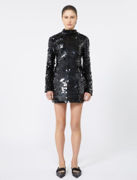 Short dress with a supported construction, featuring darts and side panels that cinch the waist and round the hips. Kimono sleeves for a graphic touch. - Jersey dress embroidered with gradient-effect sequins - Slim-fit at the waist with rounded hips - Raised collar with concealed back zip - Kimono sleeves - Darts at the waist and shaped side panels Composition and Care Jersey fabric 100% polyester; joining thread 100% polyester; lining 1 62% acetate, 38% polyester; lining 2 100% polyamide; - exclusive of decoration. Hand wash cold (40°c max); do not bleach; do not tumble dry; flat drying in the shade; do not iron; do not dry clean; do not wet clean.; using neutral detergent.; don’t rub.; turn the articles inside out before washing. Distributed by Max Mara S.r.l., registered office in Reggio Emilia (Italy), Via Giulia Maramotti 4, 42124