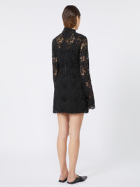 DETAILS Dress with graphic silhouette, made in a floral macrame. The construction with darts and shaped side panels emphasises the hips and cinches the waist. Floral macrame dress Slim-fit at the waist with rounded hips Raised collar with concealed back zip Darts at the waist and shaped side panels Garment with matching scuba jersey slip COMPOSITION AND CARE Jersey dress 100% polyester. Petticoat outer fabric 82% polyamide, 18% elastane; inner fabric 100% polyester. Jersey dress: hand wash cold (40°c max); do not bleach; do not tumble dry; flat drying in the shade; cool iron; professionally dry clean perchloroethylene - mild process; do not wet clean.; Iron with a cloth between.; Using neutral detergent.; Don’t rub.; Turn the articles inside out before washing.; To be ironed on reverse. Petticoat: hand wash cold (40°c max); do not bleach; do not tumble dry; flat drying in the shade; cool iron; do not dry clean; do not wet clean.; Iron with a cloth between.; Using neutral detergent.; Don’t rub.; Turn the articles inside out before washing.; To be ironed on reverse. Distributed by Max Mara S.r.l., registered office in Reggio Emilia (Italy), Via Giulia Maramotti 4, 42124 (IT)