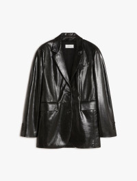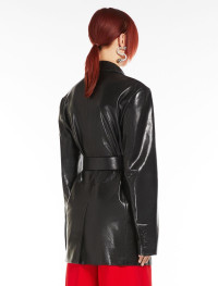 Long blazer made of nappa leather with a shiny finish, with lapels at the neckline, flap pockets and a single-breasted button fastening. The belt with a metal buckle defines the waist, outlining the silhouette. Lined garment with centre-back slit. Wide fit. Composition and Care Style in lamb leather; lining in 97% polyester, 3% elastane. Do not wash; do not bleach; do not tumble dry; do not iron; do not dry clean; do not wet clean.; do not wash or dry clean by fabric methods. clean only by leather and fur specialists.; remove the belt before washing.; care should be taken with light-coloured garments and accessories because body heat could lead the leather to colour loss and staining. care should be taken when sitting on light-coloured surfaces, especially if damp. avoid lengthy exposure to direct light or heat sources. do not store garments in plastic bags for long periods. Distributed by Max Mara S.r.l., registered office in Reggio Emilia (Italy), Via Giulia Maramotti 4, 42124