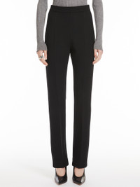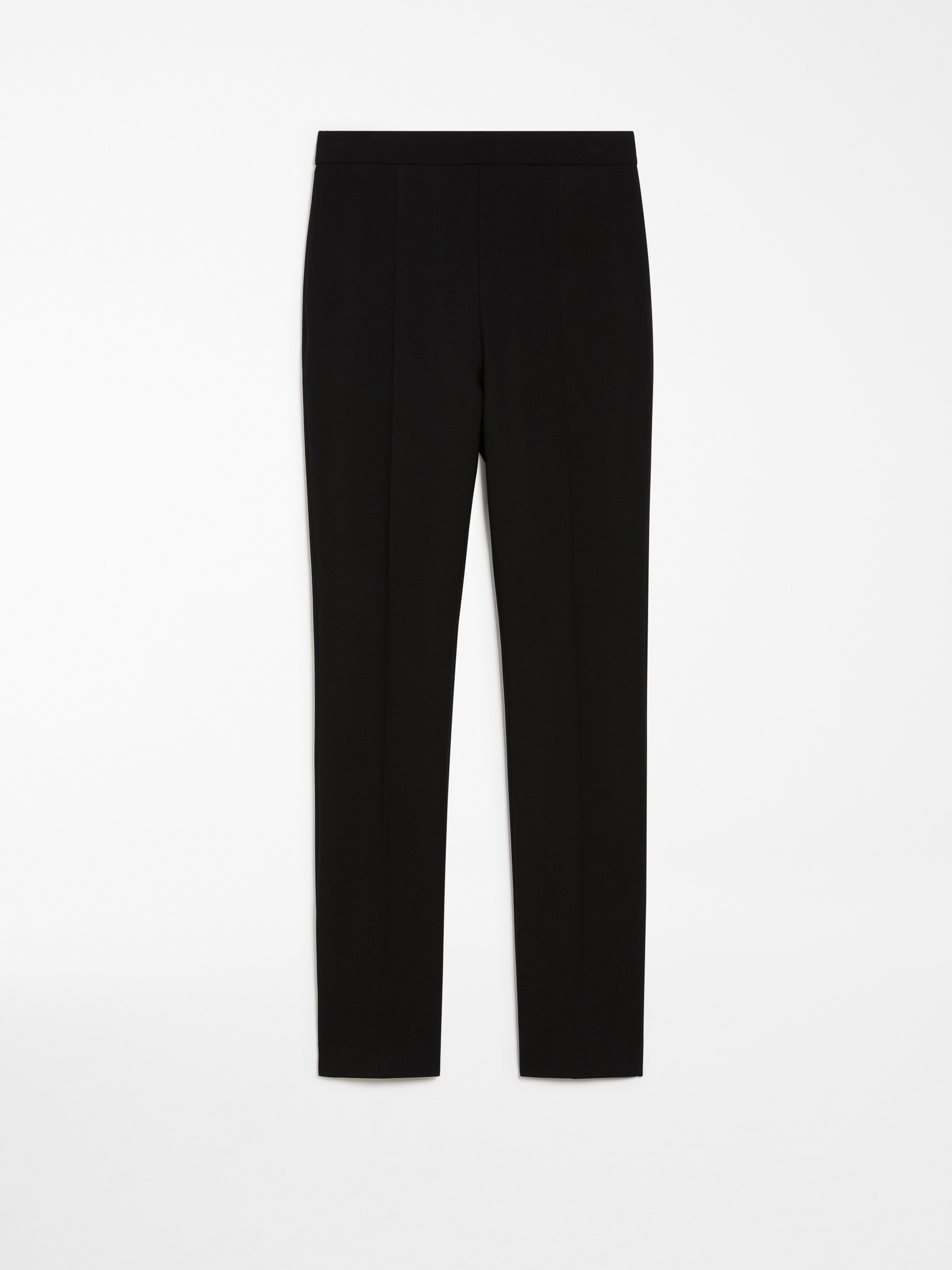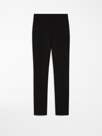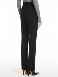 DETAILS Feminine trousers in heavy stretch wool-blend gabardine fabric featuring a clean-cut design. The straight legs boast pressed pleat detail on the front and back for a slender silhouette. Concealed zip fastening at the back. COMPOSITION AND CARE Fabric 53% polyester, 43% virgin wool, 4% elastane; - except joining thread. Do not wash; do not bleach; do not tumble dry; cool iron; professionally dry clean perchloroethylene - mild process; do not wet clean. Distributed by Max Mara S.r.l., registered office in Reggio Emilia (Italy), Via Giulia Maramotti 4, 42124 (IT)