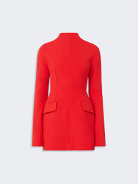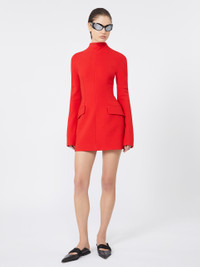 DETAILS Short dress with graphic lines, featuring shaping that outlines the silhouette, accentuating the hips. Dress in stretch wool-blend gabardine Slim-fit at the waist with rounded hips Raised collar with concealed back zip Darts and shaped side panel construction Flapped side pockets Fitted waist COMPOSITION AND CARE Outer fabric 53% polyester, 43% virgin wool, 4% elastane; - except joining thread; inner fabric 100% polyester. Do not wash; do not bleach; do not tumble dry; cool iron; professionally dry clean perchloroethylene - mild process; do not wet clean. Distributed by Max Mara S.r.l., registered office in Reggio Emilia (Italy), Via Giulia Maramotti 4, 42124 (IT)