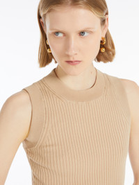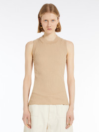 DETAILS Tank top in pure cotton with an all-over flat-rib knit. Drop stitching along the neckline, armholes and sides, with wide ribbed borders. Regular fit. COMPOSITION AND CARE 100% cotton. Hand wash cold; do not bleach; do not tumble dry; flat drying in the shade; cool iron; professionally dry clean perchloroethylene - mild process; do not wet clean.; iron with a cloth between.; using neutral detergent. Distributed by Max Mara S.r.l., registered office in Reggio Emilia (Italy), Via Giulia Maramotti 4, 42124 (IT)