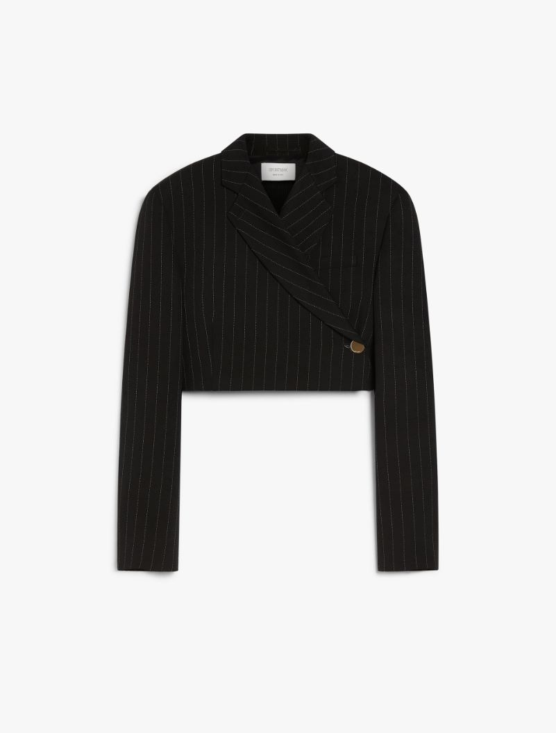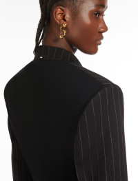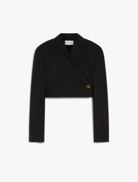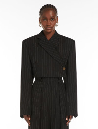 Short, waist-length tailored blazer with a double-breasted construction and customised metal button. The fit is feminine, with a lapel collar and breast pocket. The entire back is made of a ribbed knit. Semi-lined garment with a stitched slit at the cuffs. Regular fit. Composition and Care Fabric 92% viscose, 7% polyamide, 1% polyester; jersey fabric 68% viscose, 24% polyester, 5% polyamide, 3% elastane; lining 70% acetate, 30% polyester; sleeves lining 97% viscose, 3% acetate. Do not wash; do not bleach; do not tumble dry; cool iron; professionally dry clean perchloroethylene - mild process; do not wet clean.; put this item into a string bag before washing it.; wash the garment while it is fastened.; do not iron the buttons. Distributed by Max Mara S.r.l., registered office in Reggio Emilia (Italy), Via Giulia Maramotti 4, 42124