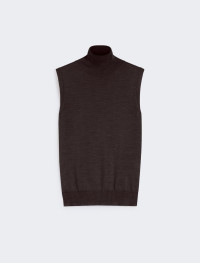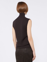 Sleeveless turtleneck in fine pure wool yarn, with high neck and dropped details along the neckline and armhole. Edges and hem of garment made of ribbed knit. - Pure wool cardigan - Soft fit with feminine line - High neck - Edges and hem of garment in ribbed knit. - Dropped details - Regular fit Composition and Care 100% virgin wool. Hand wash cold (40°c max); do not bleach; do not tumble dry; flat drying in the shade; cool iron; professionally dry clean perchloroethylene - mild process; do not wet clean.; iron with a cloth between.; using neutral detergent. Distributed by Max Mara S.r.l., registered office in Reggio Emilia (Italy), Via Giulia Maramotti 4, 42124