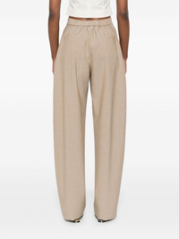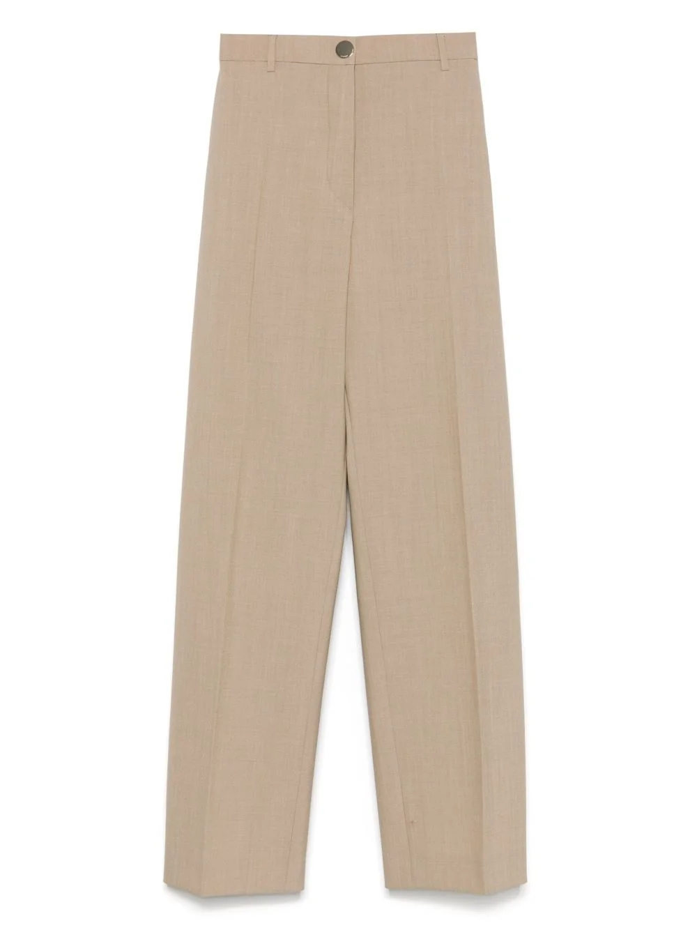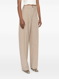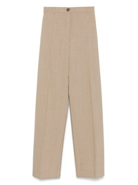 virgin wool high-waisted trousers Highlights - Beige - Front button and zip fastening - Slip pockets to the sides - Two rear welt pockets - Crease effect Imported Composition Virgin Wool 100% SIZE & FIT Model measurements Height 5 ft 11 in(1.8 m) Bust/Chest 31.49 in(80 cm) Hips 36.61 in(93 cm) Waist 24.4 in(62 cm) FittingInformation Designed for a tapered fit, these trousers allow for a close fit at the waist and a loose unrestricted fit over the leg with a closer fit towards the ankle The partially elasticated waistband offers increased movement and comfort at the waist Made from a midweight non-stretch fabric, this piece offers minimal elasticity when worn Washing instructions Dry Clean Only