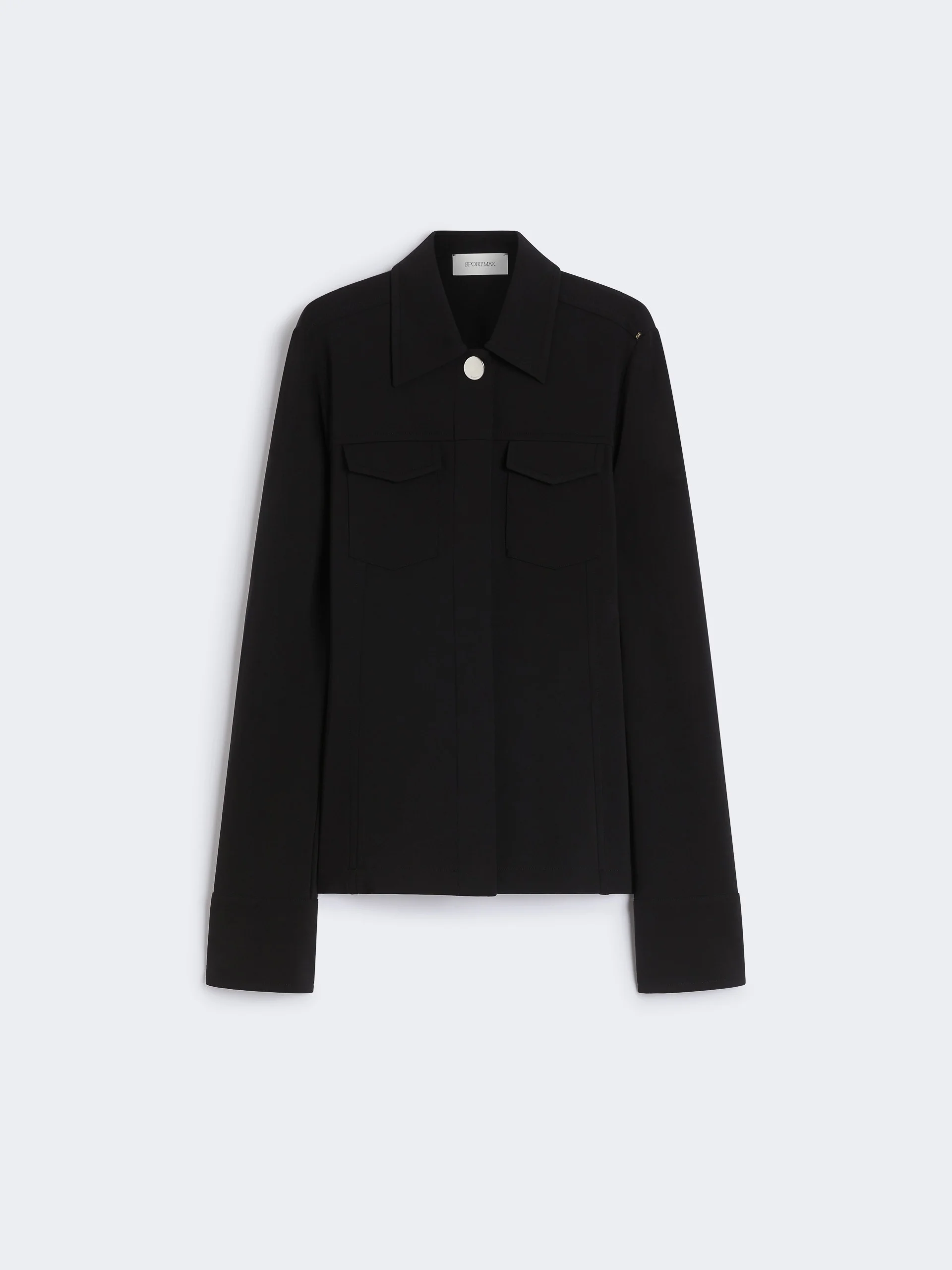 DETAILS Jacket made of crepe fabric, with a shirt-like line and details inspired by denim models. The feminine line is emphasized by vertical seams on both the front and back. Hidden closure and custom metal buttons. Stretch viscose blend jacket Fit that slides along the body Shirt collar Covered placket with custom metal buttons Yoke on both front and back, with flap pockets on the chest Fit COMPOSITION AND CARE 70% viscose, 25% polyamide, 5% elastane. Do not wash; do not bleach; do not tumble dry; cool iron; professionally dry clean perchloroethylene - mild process; do not wet clean.; iron with a cloth between. Distributed by Max Mara S.r.l., registered office in Reggio Emilia (Italy), Via Giulia Maramotti 4, 42124 (IT)