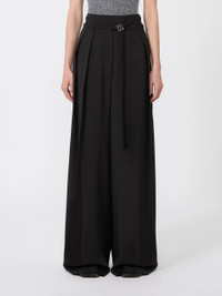 DETAILS Wide-leg trousers with a waist accentuated by pleats and a double-wrap belt with a metal S-shaped buckle. - Natural stretch pure wool canvas trousers - Double-wrap fabric belt with S-shaped metal buckle - Double pleat at the waist - In-seam side pockets and rear welt pockets - Regular fit COMPOSITION AND CARE 100% virgin wool. Do not wash; do not bleach; do not tumble dry; cool iron; professionally dry clean perchloroethylene - mild process; do not wet clean.; wash the belt in a net sack. Distributed by Max Mara S.r.l., registered office in Reggio Emilia (Italy), Via Giulia Maramotti 4, 42124 (IT) Collection: Sportmax Product code: 2131026106004 - SPXBAUTTA