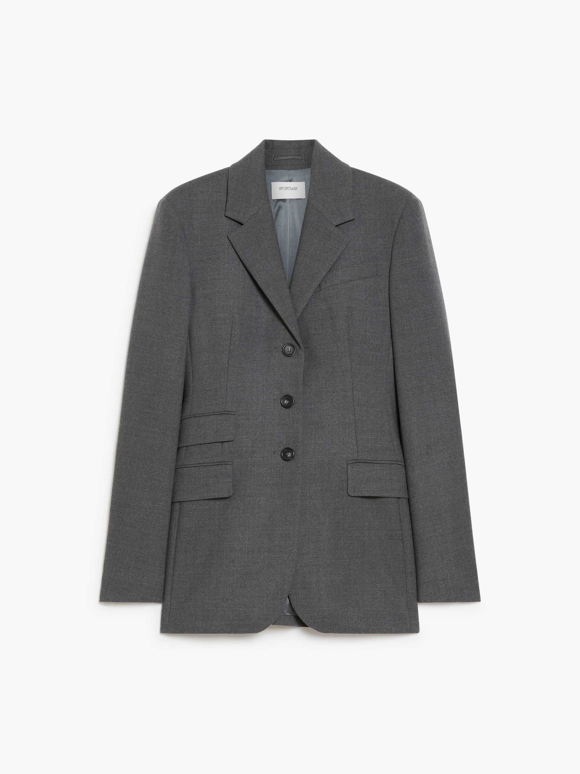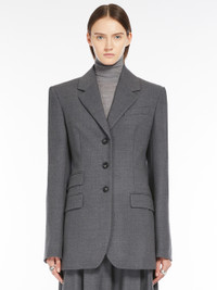 DETAILS Tailored blazer in stretch wool flannel fabric. The feminine, slim fit is accentuated by the silhouette-defining darts and shaping. The garment boasts a small lapel neckline, central button fastening and flap-adorned mannish-style side pockets. COMPOSITION AND CARE Fabric 95% virgin wool, 5% elastane; lining 70% acetate, 30% polyester; sleeves lining 97% viscose, 3% acetate. Do not wash; do not bleach; do not tumble dry; cool iron; professionally dry clean perchloroethylene - mild process; do not wet clean.; wash the garment while it is fastened.; turn the articles inside out before washing. Distributed by Max Mara S.r.l., registered office in Reggio Emilia (Italy), Via Giulia Maramotti 4, 42124 (IT)