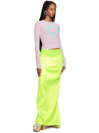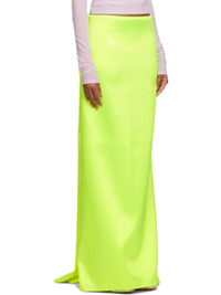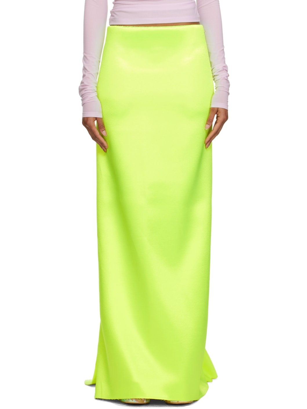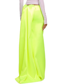 Polyester satin skirt. Gathering throughout. · Elasticized waistband · Raw edge and fraying at hem · Bustle at back · Unlined Supplier color: Bright yellow