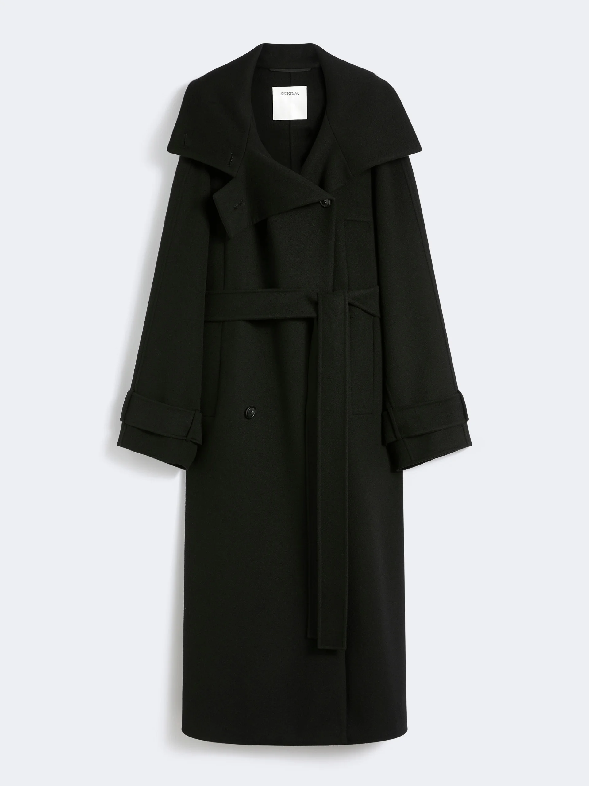 DETAILS Warm and enveloping trench coat in double-faced pure wool fabric. The design, complete with a side-set button fastening, is full of details, such as a raised neck, statement welt pockets along the sides and a detached rear yoke. Double-faced pure wool trench coat Loose fit Raised neck Button fastening and belt Shoulder epaulettes and cuff tabs Wide fit COMPOSITION AND CARE Fabric 100% virgin wool; - except joining thread. Do not wash; do not bleach; do not tumble dry; cool iron; professionally dry clean perchloroethylene - mild process; do not wet clean.; put this item into a string bag before washing it.; wash the garment while it is fastened.; turn the articles inside out before washing. Distributed by Max Mara S.r.l., registered office in Reggio Emilia (Italy), Via Giulia Maramotti 4, 42124 (IT)