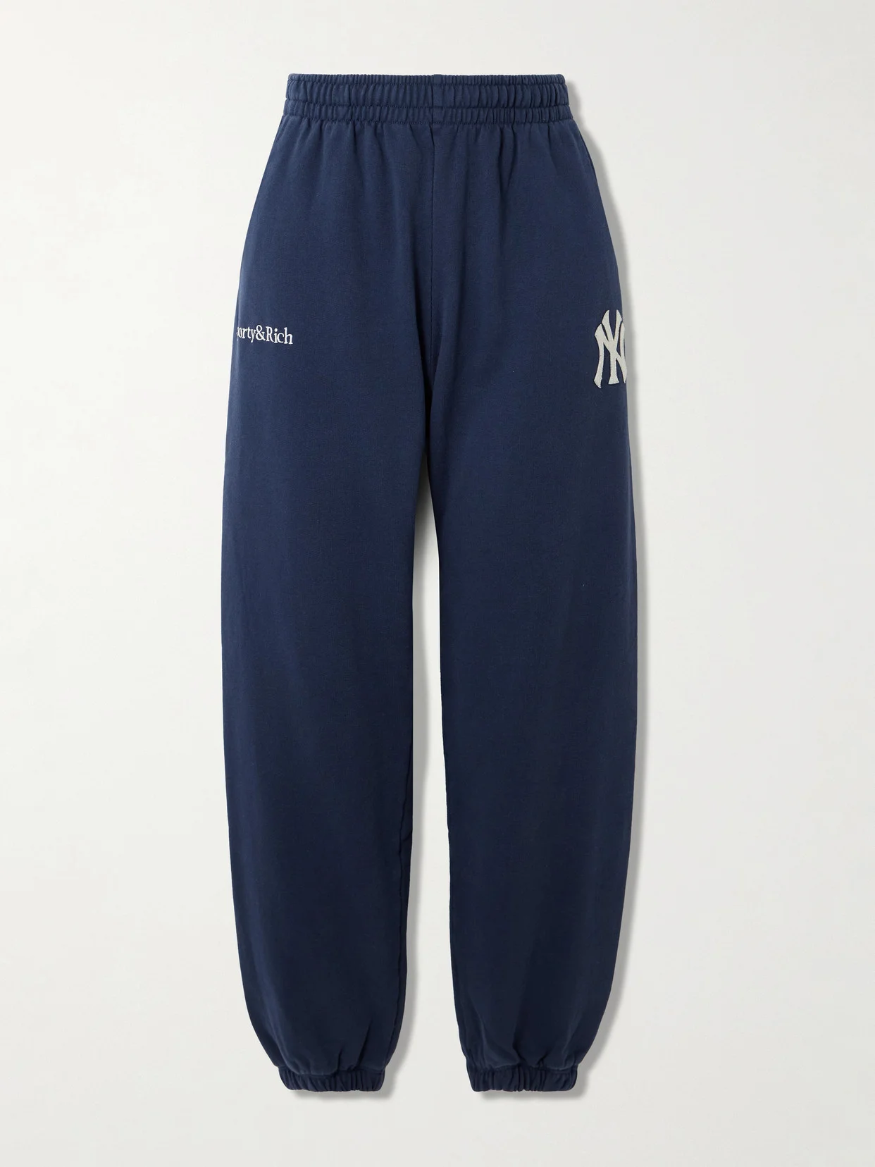 Sporty & Rich's collaboration with '47 and the New York Yankees is one that can't be missed. Included in the line-up are these 'Serif' track pants, made from comfortable cotton-jersey. They're designed with an elasticated drawstring waistband and are appliqued and embroidered with the recognizable logos. They have a straight-leg fit that subtly tapers at the cuffs.