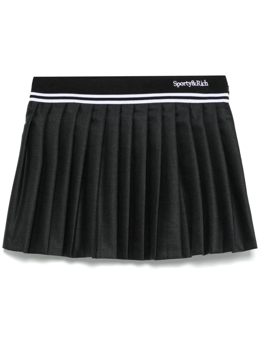 Abigail mini skirt Highlights - Anthracite grey - Concealed side hook and zip fastening - Embroidered logo to the side - Stripe detailing - Fully pleated Imported Composition Outer: Virgin Wool 100%, Polyester 100%, Elastane 100% Lining: Polyester 100% SIZE & FIT Model measurements Height 5 ft 10 in(1.78 m) Bust/Chest 33.85 in(86 cm) Hips 36.61 in(93 cm) Waist 26.77 in(68 cm) FittingInformation This mini-length skirt is intended to be worn low on the hips The elasticated waist allows for a comfortable fit Made from a midweight fabric