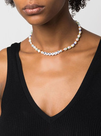 Be Nice pearl-bead necklace white/multicolour brass pearl detail bead detailing Be Nice lettered beads logo charm rear clasp fastening Imported SIZE & FIT Model measurements Height 5 ft 11 in(1.8 m) Bust/Chest 31.49 in(80 cm) Hips 35.82 in(91 cm) Waist 24.8 in(63 cm) Measurement Length when open 17.32 in(44 cm) WIDTH 0.31 in(0.8 cm)