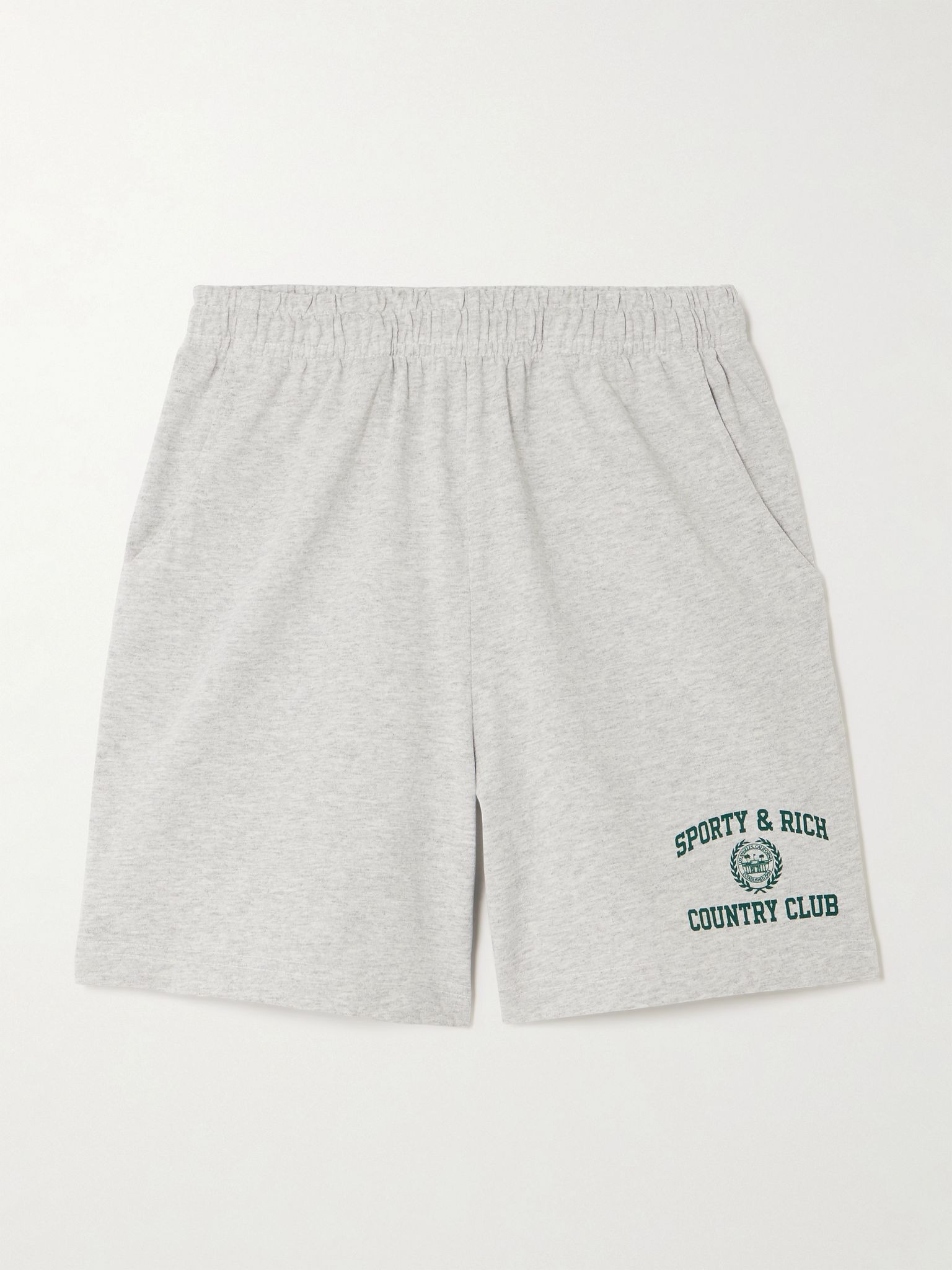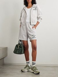 Sporty & Rich's 'Varsity Crest' shorts are inspired by country club attire from the '90s. Made from soft cotton-jersey, they have a comfortable elasticated waistband and loose legs with the brand's logo printed just above the hem. Complete the set with the matching T-shirt. Size & Fit - Fits true to size, take your normal size - Mid-rise designed for a slightly loose fit - Elasticated at the waist for a flexible fit - Mid-weight, slightly stretchy fabric - Model is 177cm/ 5'10" and is wearing a size Small Model measurements: - Bust: 77cm/ 30.5" - Waist: 62cm/ 24.5" - Hip: 88cm/ 34.5" Details & Care - Light-gray melange and forest-green cotton-blend jersey - Pull on - 97% cotton, 3% polyester - Machine wash - Designer color: Heather Gray