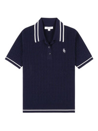 cable-knit polo top Highlights - Dark navy - Cable knit - Short sleeves - White tipping - Button fastening - Embroidered logo Imported Composition Viscose 85%, Polyester 15% Washing instructions Read Manufacturer Guidelines