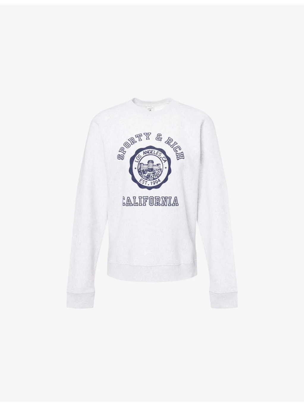 PRODUCT DETAILS - Sporty & Rich cotton-blend sweatshirt - 50% polyester, 50% cotton - Relaxed fit, round neck, dropped shoulders, long sleeves, logo print at front, ribbed trims, marl finish - Machine wash at 30°C - Made in Portugal - True to size - Model is 5ft 10in/1.78m and wears a size small - Midweight, slight stretch Ref: R04509868