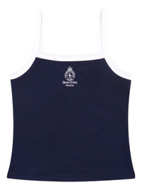 contrast-binding ribbed top Highlights - Dark navy - White binding - Spaghetti straps - Straight neckline - Embroidered logo Imported Composition Cotton 97%, Elastane 3% Washing instructions Read Manufacturer Guidelines