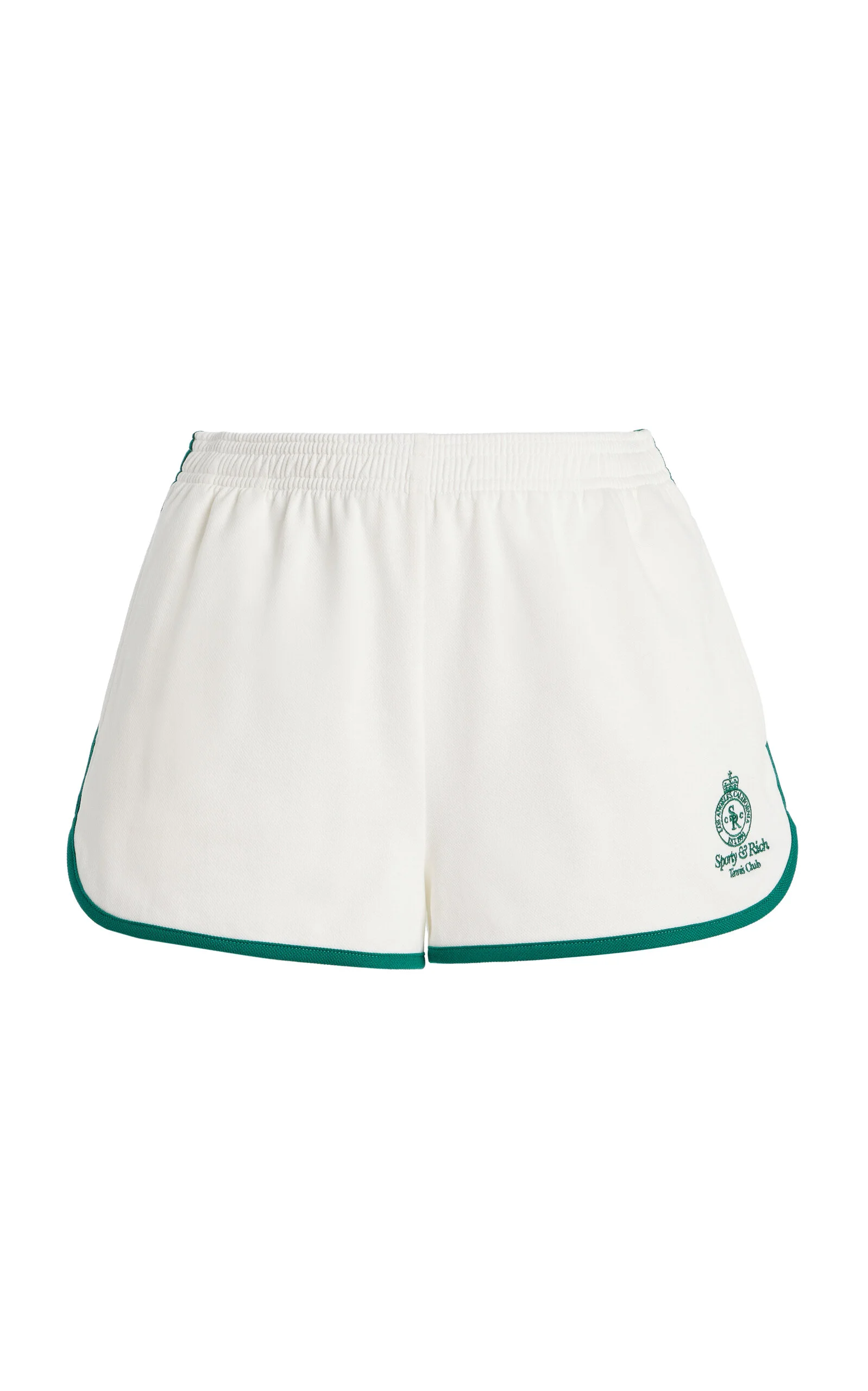 Emily Oberg, the influential designer behind Sporty & Rich, says the lifestyle brand's ethos is "be nice, drink water, be good to the planet, take care of yourself and live a life of pleasure." The 'Crown' micro-mini shorts have a retro-inspired design made from breathable cotton pique with light stretch. Complete the look with the matching polo. PRODUCT DETAILS - Fall '25 - Pull on - Composition: 97% cotton, 3% elastane - Designer color: White/ Alpine - Machine wash - Made in Portugal