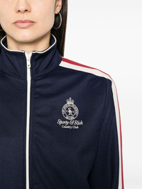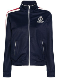 Crown track jacket Highlights - Navy blue - Cotton blend - High neck - Stripe trim - Embroidered logo at the chest - Long sleeves - Elasticated cuffs - Two side slit pockets - Elasticated hem - Front zip fastening Imported Composition Polyester 52%, Cotton 48% SIZE & FIT Model measurements Height 5 ft 11 in(1.8 m) Bust/Chest 33.07 in(84 cm) Hips 37.4 in(95 cm) Waist 25.19 in(64 cm) FittingInformation Designed for a relaxed fit, this piece allows for comfort and movement when worn The elasticated hem allows for movement and a comfortable fit Made from a midweight non-stretch fabric, this piece offers minimal elasticity when worn This piece fits true to size – take your usual size