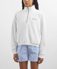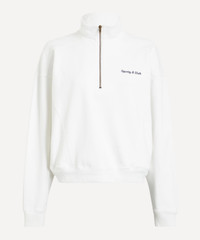 DETAILS Cotton fleece sweatshirt Slightly oversized fit Dropped shoulders Long sleeves Stand collar Quarter zip fastening Sporty & Rich chest embroidery Eden Crest embroidery on the back Two side pockets SIZE & FIT Model is 178cm/5'10"; Chest: 79cm; Waist: 62cm; Hip: 88cm and wears a size S COMPOSITION & CARE 100% Cotton Machine washable