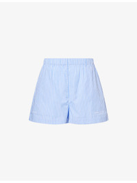 PRODUCT DETAILS - Sporty & Rich cotton shorts - 100% cotton - Pulls on - Relaxed fit, elasticated waist, side pockets, striped, logo at front - Machine wash mild - True to size - Model is 5ft 10in/1.78m and wears a size small - Lightweight, non-stretch Ref: R04520763