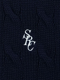embroidered-logo cable knit jumper Highlights - Navy blue - Cotton - Knitted construction - Cable knit - Embroidered logo to the front - Round neck - Long sleeves - Ribbed cuffs and hem - When buying this unisex item, keep in mind that it is graded in standard men's sizing. Imported Composition Cotton 100%