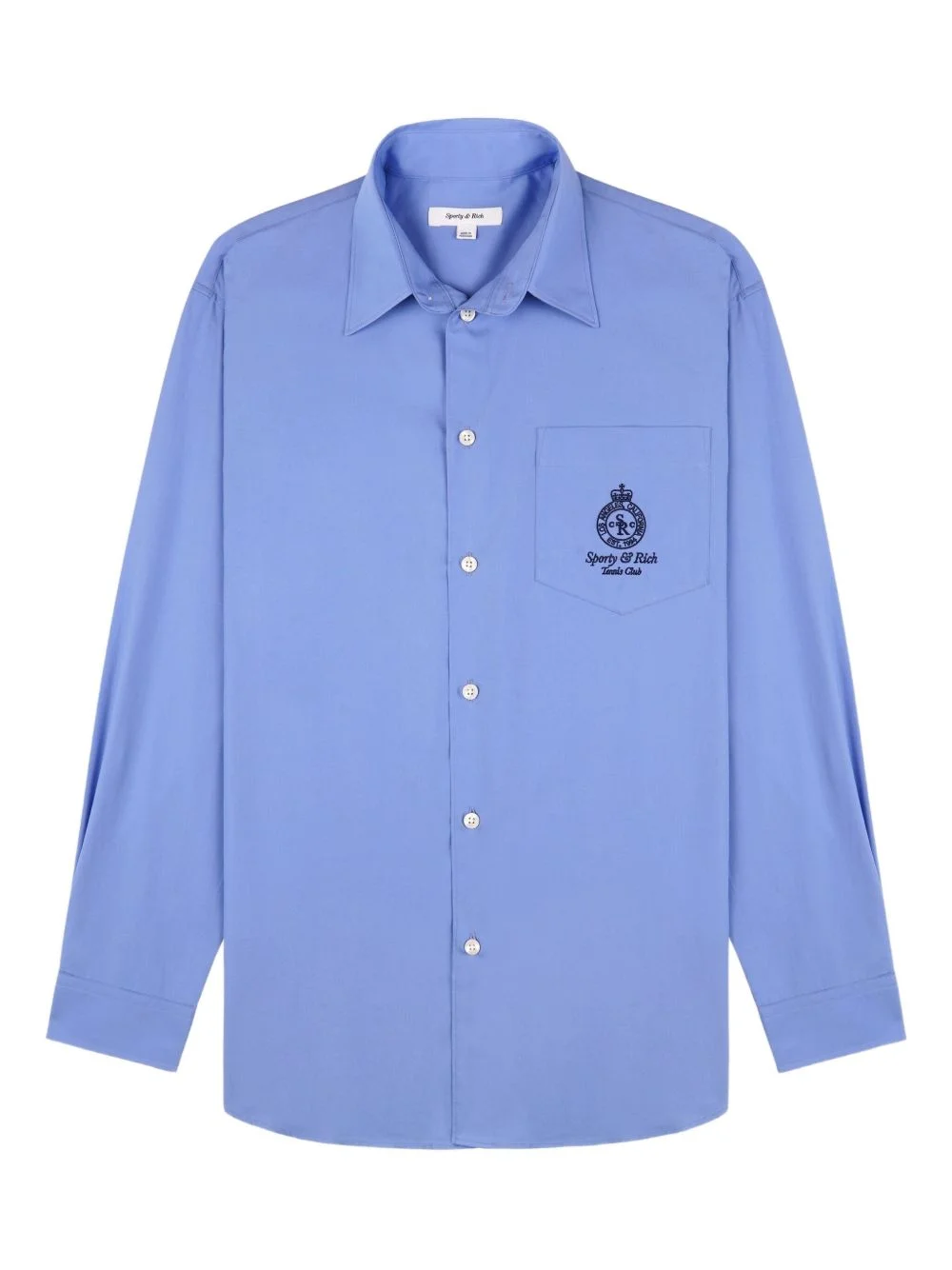 embroidered-pocket shirt Highlights - Flax blue - Long sleeves - Button fastening - Chest pocket - Embroidered logo - Point collar Imported Composition Cotton 100% Washing instructions Read Manufacturer Guidelines