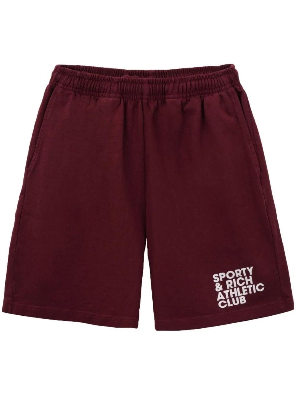 Exercise Often Gym shorts Highlights - Bordeaux red - Cotton - Pull-on style - Elasticated waistband - Logo print at the leg - Knee-length - Two side slit pockets - Rear patch pocket Made in United States Composition Cotton 100%