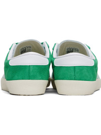 Low-top suede and buffed leather sneakers. · Serrated edges throughout · Lace-up closure · Logo printed at tongue · Padded collar · Signature stripes at sides · Logo stamp at outer side · Treaded rubber sole Part of the Sporty & Rich x adidas Originals collaboration. Supplier color: Court green/Cloud white/Off white Upper: leather. Sole: rubber. Made in Viet Nam 252446F128000
